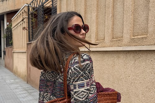 El bolso, aunque da un aspecto artesanal, lo cambiaría por una opción de nailon que sea más resistente a cualquier temporal. Tanto Parfois como Bimba y Lola tienen modelos que se ajustan a nuestras necesidades. Para los accesorios, si queremos seguir la línea atemporal, un pañuelo estampado sería increíble.