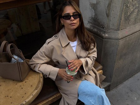 Para llevar este bolso lo ideal es mantener esa estética de lujo silencioso sin muchos artificios por ejemplo, con un trench color crema, unos pantalones de sastre negros y unas bailarinas (aunque también podemos cambiar el negro por un elegante marrón chocolate). El toque final de sofisticación lo pone un recogido pulido y unas gafas de sol minimalistas.
