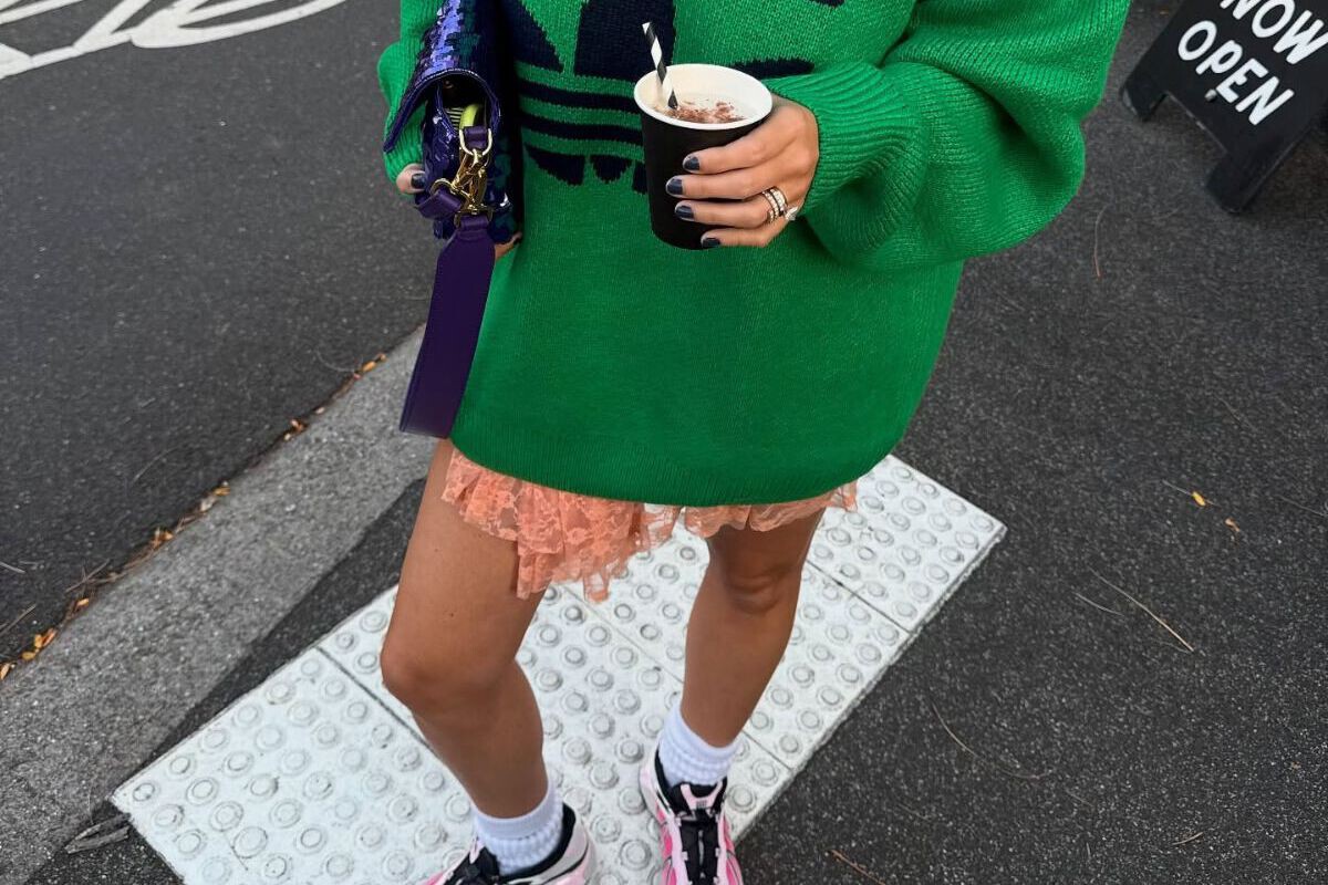 La creadora de contenido Courtney Crews no es danesa pero sí que le ha pillado el truco a esto de integrar el calzado de montaña en los looks de oficina y para muestra este outfit formado por blazer, falda plisada y corbata. Una mezcla profesional y a la vez rompedora gracias a detalles como los calcetines por encima de la rodilla.