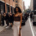 Un look perfecto para ir a tomar un brunch con nuestras amigas este verano o ir al mercado sin perder el estilo. Las joyas doradas y plateadas darán un toque clásico al conjunto y lo elevarán fácilmente. Un pañuelo anudado al bolso sería clave para añadir un toque trendy a este outfit.