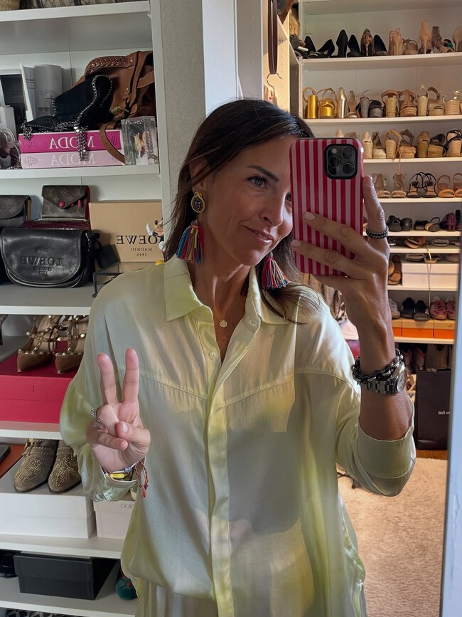 Estamos viviendo en una época donde todo combina a la perfección. Aquellos detalles minimalistas con otros vibrantes. En esta propuesta de Raquel Revuelta, vemos como las pulseras discretas como la de Tous quedan genial con el brazalete de resina XXL. Todo en armonía con un look formado por tonos tierras, en concreto, unos pantalones color chocolate en tendencia y un chaleco bordado muy bonito.
