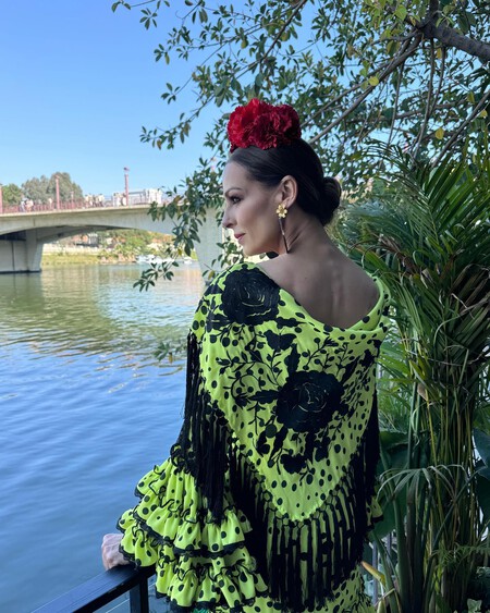 Esta propuesta de Lourdes Montes es perfecta para combinarla con las alpargatas de Ralph Lauren. Un vestido de flamenca en tono lila que luce a la perfección con el verde oliva. Una opción sencilla que podemos combinar con un montoncillo y con unas flores en otro color que destaquen. Un traje de lunares que vuelven con mucha popularidad esta temporada.