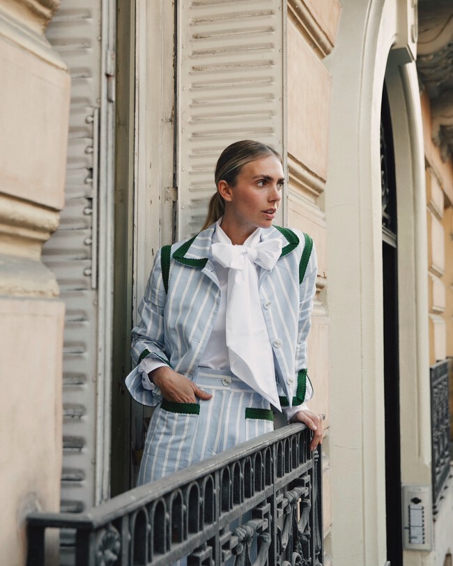 Esta propuesta de la influencer Sara Bartabac es un acierto para llevar las bailarinas de rafia firmadas por Toni Pons. Un conjunto monocolor formado por una falda y una cazadora beige. Los días más calurosos del año, podremos llevarla con una camiseta básica que jamás nos fallará.