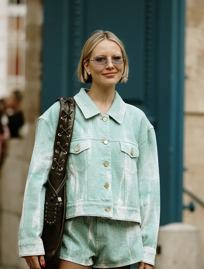 Un conjunto denim corto es una buena base para crear un outfit con rollazo sin esfuerzo. Esta propuesta del street style de París es ideal para combinar con las Converse de crochet, dándole un toque muy chic al look. Además, un bolso shopper añadiría funcionalidad convirtiéndole en un comodín para ir al mercado con mucho estilo o, desayunar con amigas en nuestra terraza favorita.