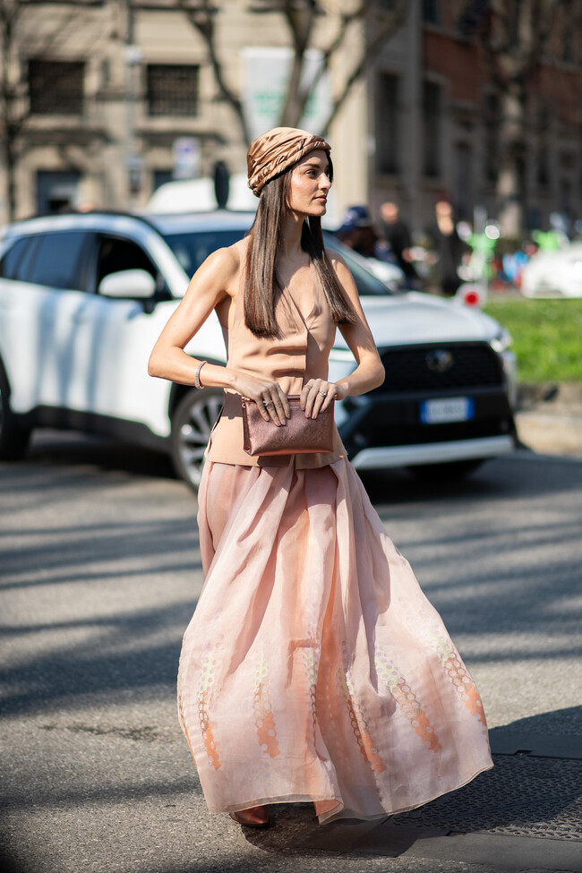 Estas últimas temporadas hemos aprendido que no debemos tenerle miedo a las combinaciones. La mezcla de prendas formales con otras de estilo casual añaden mucho rollazo. Un ejemplo es este look del street style de Milán. Está formado por un pantalón de chandal y una americana oversize con raya diplomática.