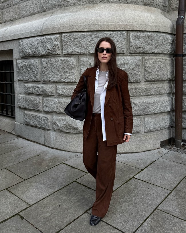 El pantalón marrón también se puede llevar con otras prendas del armario como una blusa como esta propuesta de la influencer Erea Louro. Los zuecos quedan genial y suman algunos centímetros a todos los conjuntos. El bolso shopper es un gran aliado y podemos incluir colores como el burdeos para agregar un aspecto más llamativo.