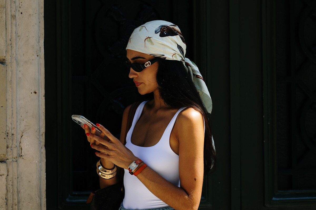 Para combinar estos pantalones vaqueros con estilo, este look del street style de París es una gran opción. Es perfecto para lucirlo cualquier día de la semana, tanto para ir a la oficina en verano como para una cena de verano, combinado con un top lencero negro que aporte más elegancia.