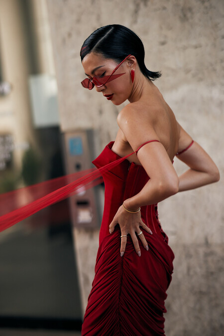 Se trata de una opción buganvilla con un estampado psicodélico que marca la diferencia en la prenda. Cuenta con una asimetría en el escote y el tirante fino que cae sobre uno de los hombros aporta sujeción, sin restar estilo. El corte es midi y tiene una abertura muy sexy en el lateral que añade un aspecto sensual.