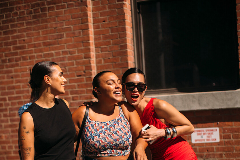 Un vestido rojo siempre será una elección acertada como look de invitada. Un tono vibrante que nos sienta genial y que podemos combinar fácilmente. En esta propuesta del street style de Nueva York, un bolso marrón trenzado es la clave para darle rollazo al outfit. Además, unos tacones semitransparentes completan el conjunto estilizando mucho la figura.