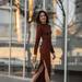 Cómo combinar un vestido de invitada marrón