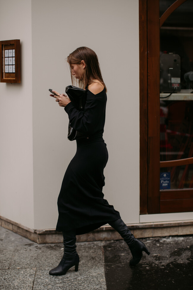 Los zapatos, para llevarla ahora en verano, podrían ser unas bailarinas con puntera cuadrada que añadan más personalidad y glamour y, durante el otoño, unas botas altas que alarguen visualmente la figura. Para las joyas, las perlas son una elección acertada con aire vintage, aunque en los outfits de la temporada, un collar de cuentas en tono rojo sería perfecto.