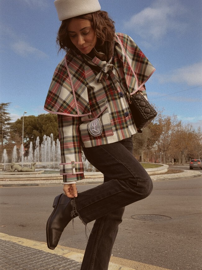 Este look tan sofisticado es un ejemplo perfecto para llevar los mocasines tricolor de Gioseppo. Un outfit formado por un pantalón en tono champán y una chaqueta estructura en color azabache. El bolso a juego añade un plus de elegante y el gorro es otro elemento que no puede faltar para poner la guinda a este conjunto.