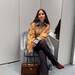 En una opción más sofisticada, la chaqueta se combina con unos pantalones de pinza negros, una camisa básica de rayas grises y unos tacones rojos de punta, muy favorecedores. El bolso Arcadie XXL de Miu Miu completa el conjunto, aportando un toque de lujo. Sin duda, este outfit es perfecto para el trabajo, especialmente por el tamaño del shopper, que ofrece funcionalidad y estilo a partes iguales. Un outfit perfecto para pasar de la oficina al afterwork.