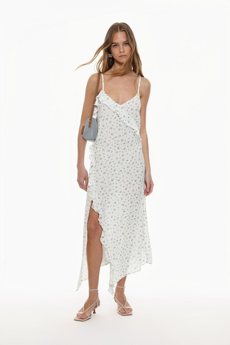 El vestido tiene tirantes finos ajustables en la parte trasera y un escote en forma de pico. La abertura lateral es perfecta para añadir un toque muy sexy al conjunto y su corte fluido es idóneo para que nos siente a todas genial. Se trata de un clásico que se puede llevar de muchas formas y obedece a distintos estilos (incluso el moderno con unos vaqueros debajo en un look formado por capas). El precio en Lefties es 25,99 euros.