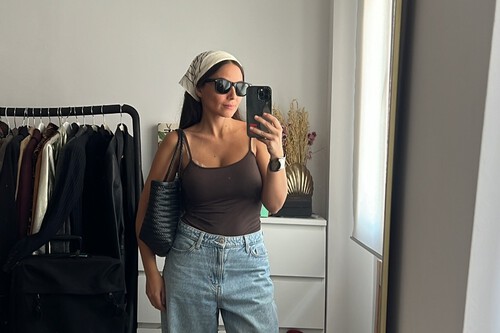 Para completar el outfit, un bolso bandolera en tono malva quedará genial y hará match con las sneakers. Las joyas juegan un papel fundamental cuando llega la primavera porque se vuelven visibles. Podemos optar por piezas más coloridas y temporales que sumen estilo al look.