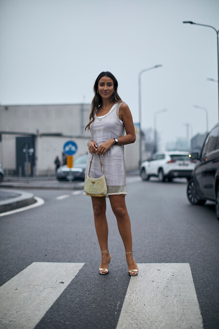 Si queremos transformar este look en una opción de noche, podemos sustituir el capazo por un bolso negro de piel y unos taconcitos en tono neutro que creen un equilibrio dentro del conjunto. Las joyas doradas y plateadas darán un aspecto clásico y atemporal. El resultado es un outfit sencillo y elegante que jamás pasará de moda.