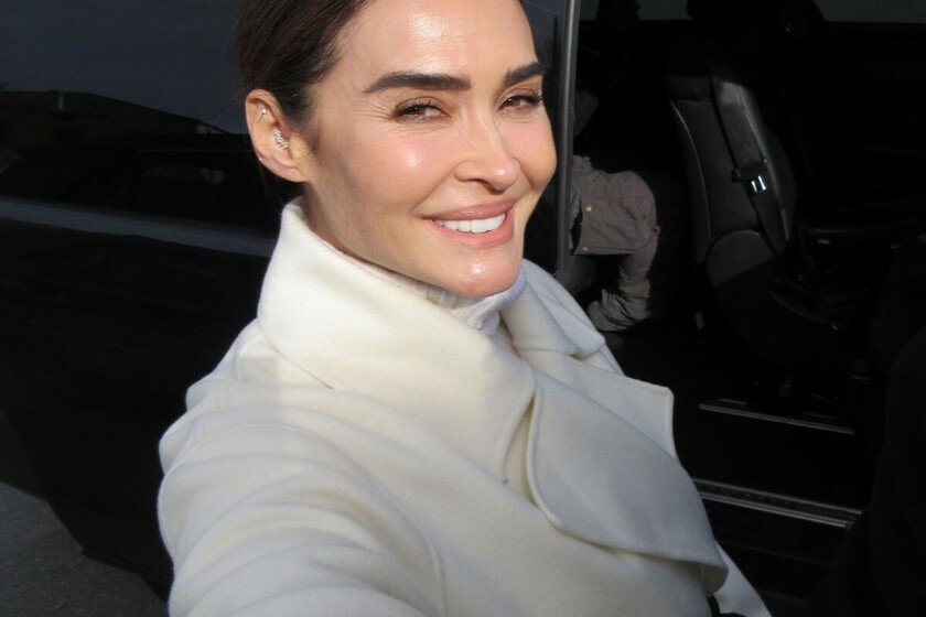 Dos piezas formado por una chaqueta oversize de aspecto jugoso con botones dorados que recuerdan a Schiaparelli por su estética escultural y un pantalón a juego. Pero los botones no son los únicos que aportan ese aura de lujo, también el color que apunta a la tendencia cromática de 2026 según Pantone: el Cloud Dancer (es decir, blanco).