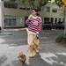 A falta de un look más veraniego y formal, he optado por la combinación de una camisa básica de rayas azules, unas bermudas de pinza blancas —el sustituto del traje de chaqueta en verano— y un bolso marrón chocolate estilo bombonera.