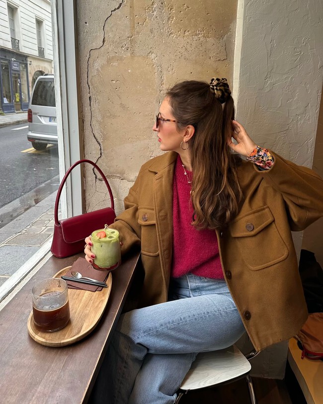 Esta propuesta de la influencer Erea Louro es ideal para combinar el jersey rojo de Lidl. Un look con estilo y comodidad formado por unos vaqueros anchos y una chaqueta camel en tendencia. Para elevar este conjunto, podemos usar unos zapatos de ante marrón chocolate, adaptando este outfit a la última moda de otoño-invierno.