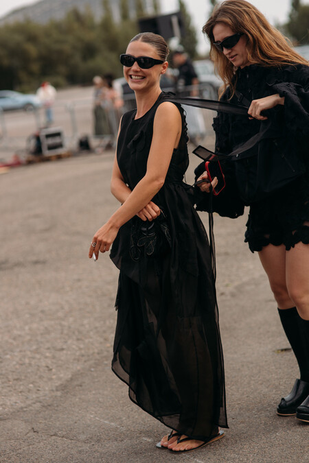 Un ejemplo gráfico de lo fácil que es combinar estas sandalias lo encontramos en la semana de la moda de Copenhague con este look básico de oficina pero fresco y original. Una propuesta a base de prendas de armario cápsula pero con un twist como por ejemplo, los pantalones negros de sastre que son en apariencia clásicos, pero el talle es sutilmente más bajo de lo ''habitual''.