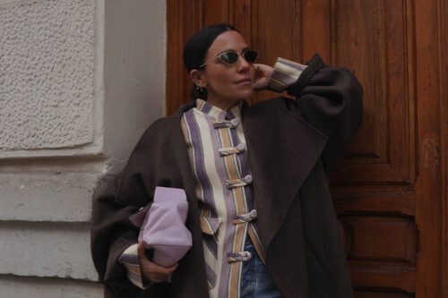 La propuesta de Marielle Haon es muy sencilla y pura tendencia. Un look que podremos recrear fácilmente con los básicos de nuestro fondo de armario. Un outfit formado por un jersey baby Blue, una camisa de rayas color amarillo mantequilla y unos vaqueros atemporales.