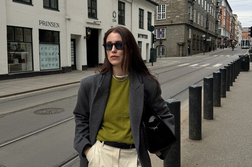 Un abrigo de paño gris marengo es una solución elegante y muy versátil. En esta propuesta de la influencer Erea Louro lo incluye fácilmente con un look muy festivo formado por un pantalón de lentejuelas y un jersey que podemos llevar a una cena cualquier noche de invierno.