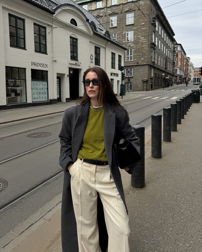 Un abrigo de paño gris marengo es una solución elegante y muy versátil. En esta propuesta de la influencer Erea Louro lo incluye fácilmente con un look muy festivo formado por un pantalón de lentejuelas y un jersey que podemos llevar a una cena cualquier noche de invierno.