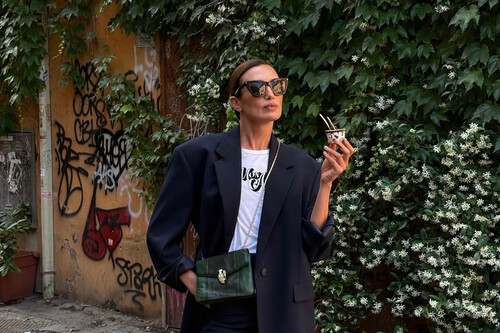 En cuanto al bolso, un shopper tipo capazo sería una opción ideal para sumar estilo, sin renunciar a llevarlo todo con nosotras. Para las joyas, una pulsera con charms y unos pendientes vintage son un must en los outfits de otoño-invierno.