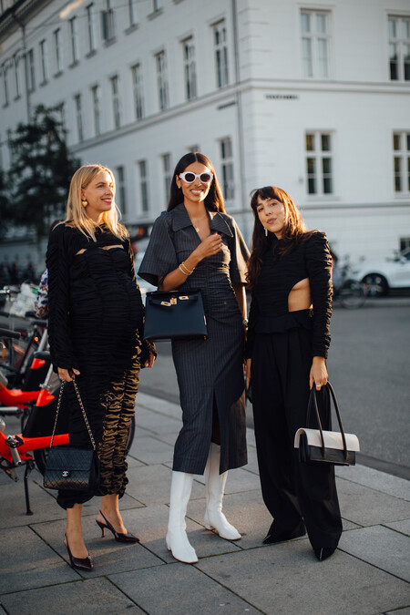 Aunque no es el vestido de Massimo Dutti, tiene las mismas vibes y nos servirá como inspiración. Se trata de una propuesta del street style de París y, en esta ocasión, lo combina con unos zapatos blancos con tacón sensato y un bolso negro, creando equilibrio y armonía en el look.