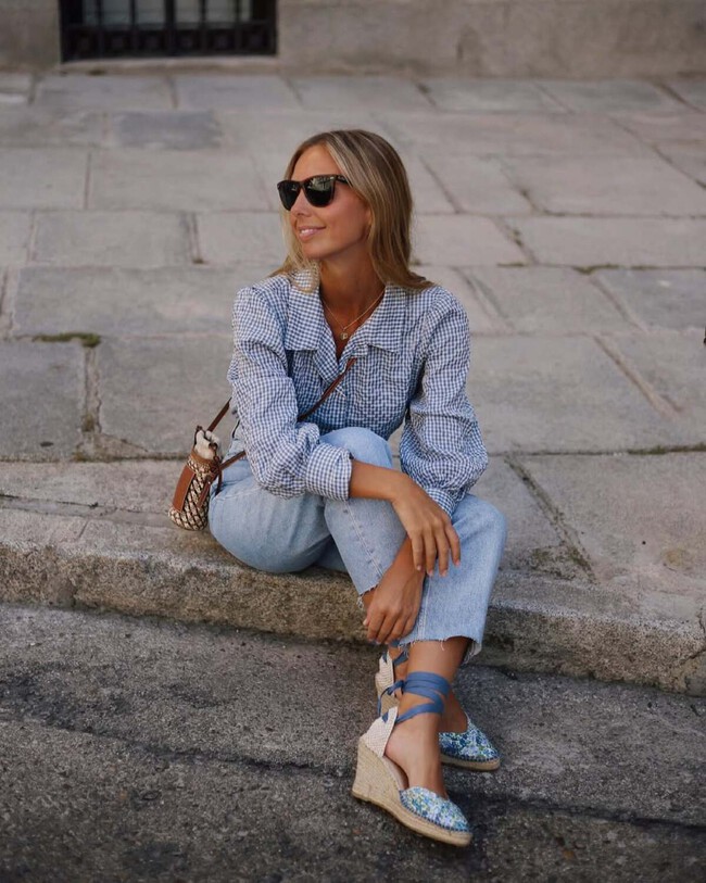 Aunque no son las mismas alpargatas, cuentan con las mismas vibes y podemos hacer combinaciones similares a las que nos ofrece la influencer en sus redes sociales. En esta ocasión, las luce con unos vaqueros y una blusa en el mismo tono. El mini bolso de estilo natural le da un toque más veraniego y es una opción increíble para llevar cualquier día a la oficina.