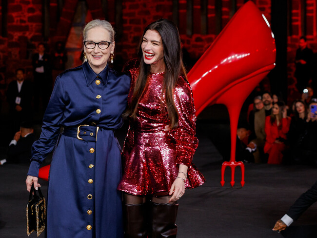 Parece que una vez más, la relación entre jefa y aprendiz se medirá en cómo cada una entiende el poder a través de la ropa. Miranda, apuesta por el clásico en clave ultrafemenina, con una falda midi estilo capa como protagonista (silueta, por cierto, clave este 2026).