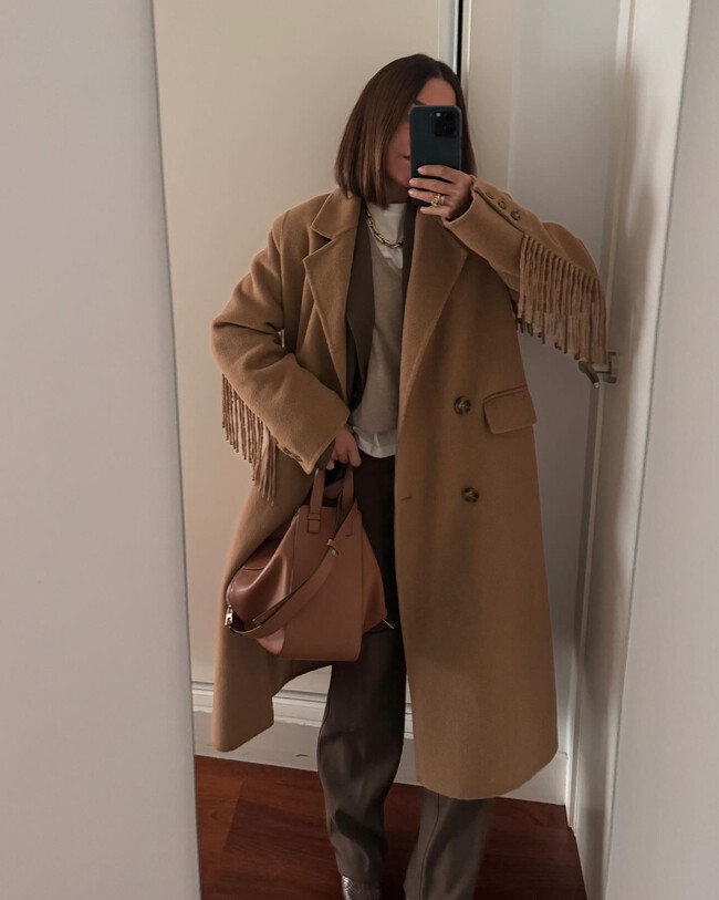 Esta propuesta de Paula Moya es un acierto para llevar el bolso de Parfois. Un look que combina los colores burdeos y marrón chocolate, dos tonos pura tendencia. Se trata de un outfit formado por unos pantalones efecto piel, un jersey finito y un abrigo de terciopelo híper elegante.