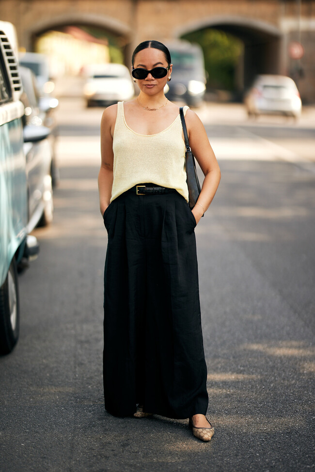 Las sandalias vichy son muy llamativas por su estampado y su color rojo, uno de los más populares de la temporada, así que un buen aliado será un look sencillo como esta propuesta del street style de Milán con tonos crudos que sumen elegancia y mucho estilo.