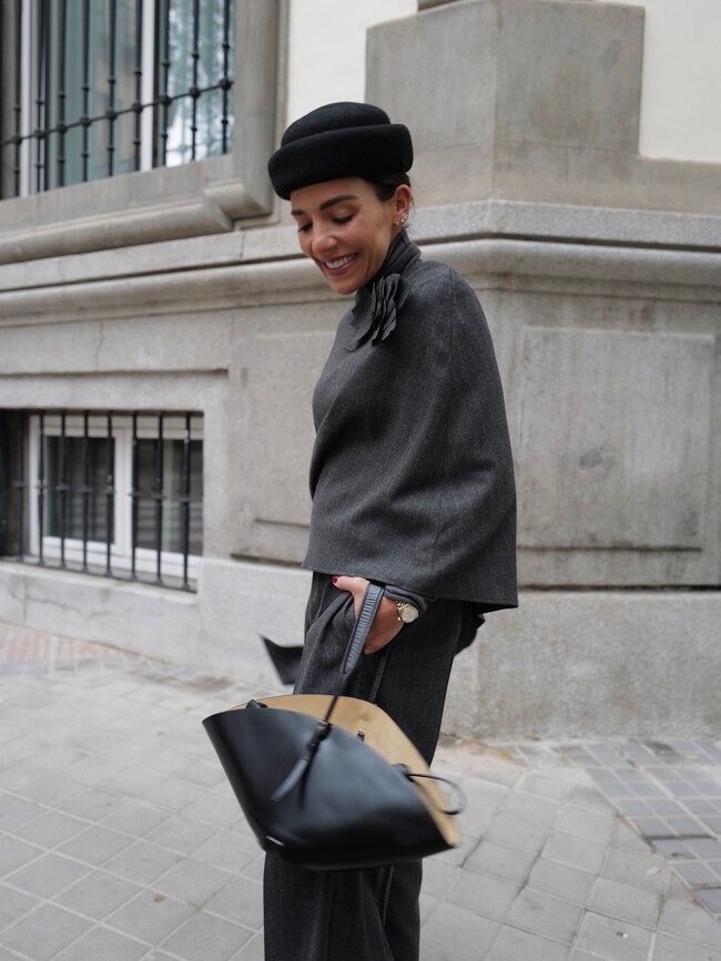 Los accesorios ganan mucho protagonismo y el bolso shopper tipo charol es un acierto. Los complementos elevan el conjunto y tanto los guantes como el pillbox quedan muy bien. Un look ideal para sumar glamour de viernes a domingo tanto de día como de noche quitando las gafas de sol.