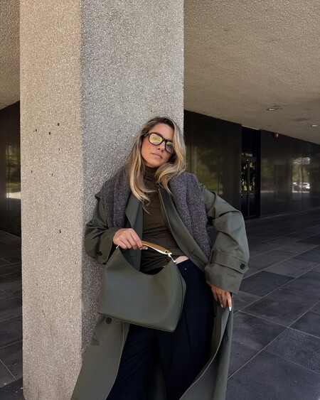 Para combinar un pantalón negro con estilo, esta propuesta de la influencer Nina Sandbech es un acierto. La mezcla con el marrón chocolate añade contraste y es perfecta para no caer en los looks más básicos de nuestro armario. Un outfit formado por un abrigo de pelo propio de una estética old money y unos jeans estrechos.