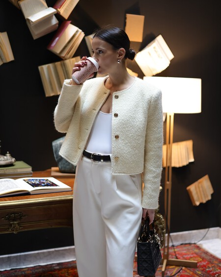 El color almendra tostada o cacao es una de las tendencias de la temporada más fáciles de combinar. En esta propuesta de Lucía Barcena, las zapatillas Nike quedarían genial combinada con el shopper del mismo tono. Los vaqueros y el jersey gris agregan un aspecto relajado y la chaqueta en tendencia elevará el outfit notablemente.
