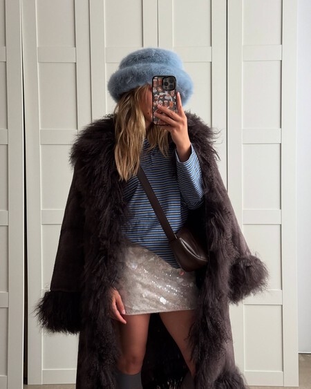 Cuando llega el invierno, la unión de la minifalda y las botas altas es un hecho, como podemos observar en la propuesta de la influencer María Fernández Rubies. Además, el animal print sigue presente dando mucho rollazo al conjunto. Igualmente, podemos sustituir el abrigo por una chaqueta tipo Barbour en tendencia y más discreta.