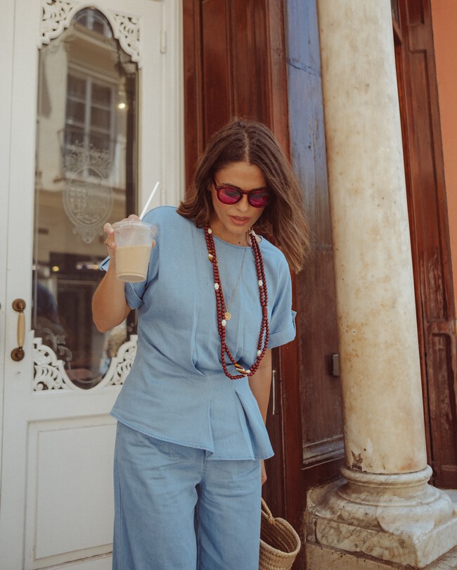 Para elevar el outfit, podemos elegir unas piezas doradas que hagan match con el bolso. La manicura jugará un papel esencial y podemos optar por unas color blanco sencillas y limpias o unas tipo francesa jamás pasarán de moda.