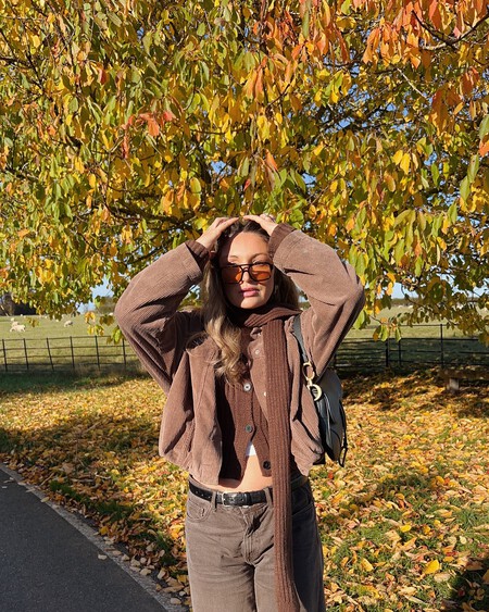 El color chocolate es uno de los favoritos de la temporada tanto en los looks diarios como en los de invitada. Así que para combinar las zapatillas, esta propuesta de la influencer Nadia Farfaix es una excelente opción con la americana beige y la camisa del mismo tono que los detalles de las Nike.