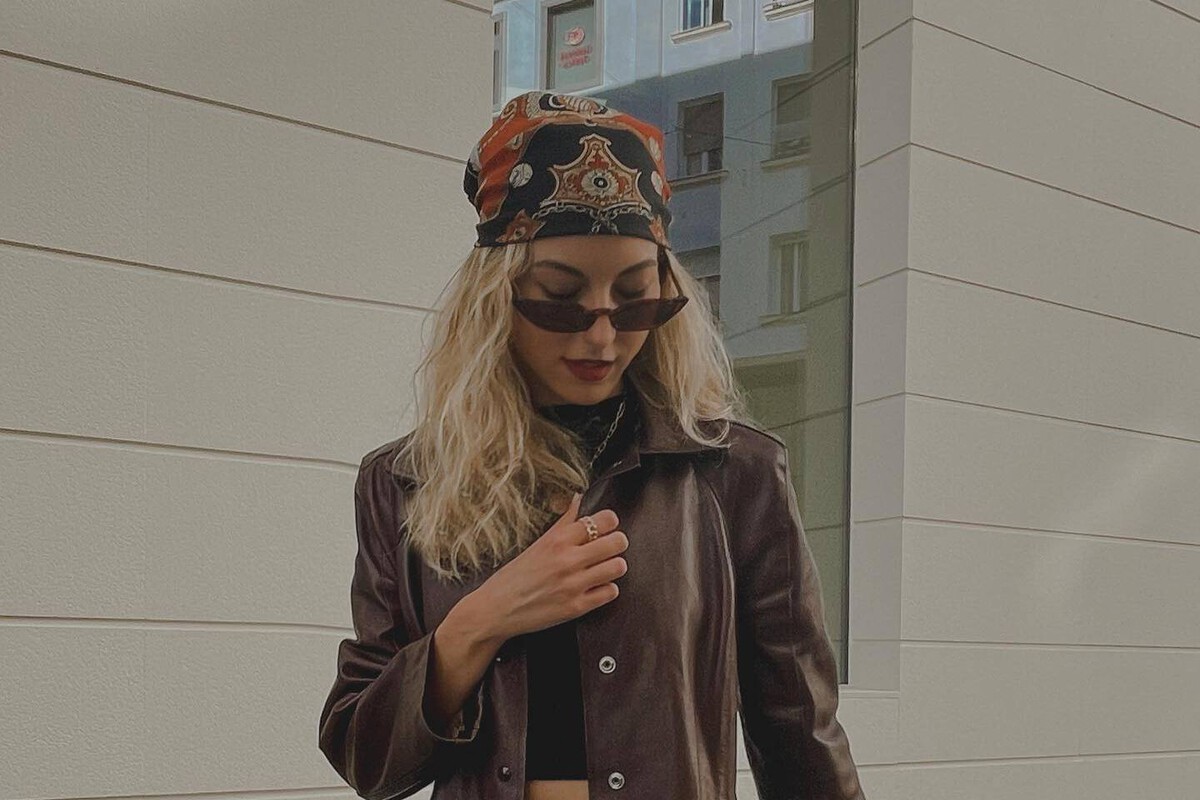 Para el bolso, se puede optar por una opción trenzada en el mismo tono que las sneakers que haga un bonito contraste con el conjunto. En cuanto a las joyas, un collar XXL plateado es una elección que agrega mucho glamour. El pañuelo de animal print añade un aspecto llamativo al look.