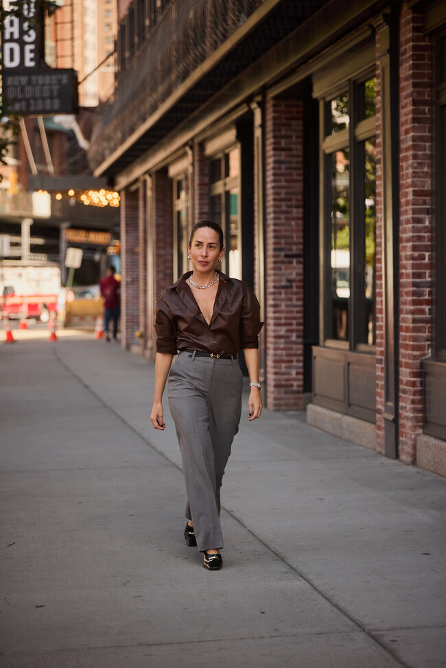 Para romper con esta estética discreta, las sneakers serán nuestras mejores aliadas y añadirán un toque personal y moderno al outfit. En cuanto al bolso, sobre todo, si vamos a hacer turismo, una bandolera es la elección más acertada. Si es en tono verde a juego con las Converse, quedará un look digno de matrícula de honor.