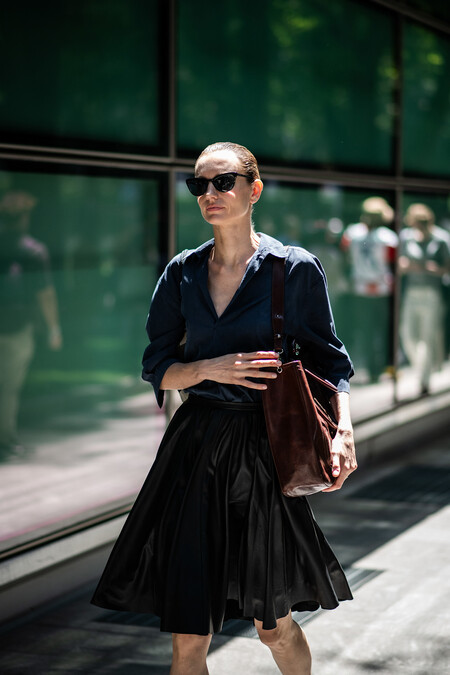 Para añadir un toque de color al conjunto, un bolso shopper pistacho, a juego con las sneakers, sería un gran ejemplo y una buena elección para llevarlo todo con nosotras. En cuanto a las joyas, un maxi collar de cuentas en tono rojo resultaría un gran aliado y agregaría un toque maximalista con mucho estilo.