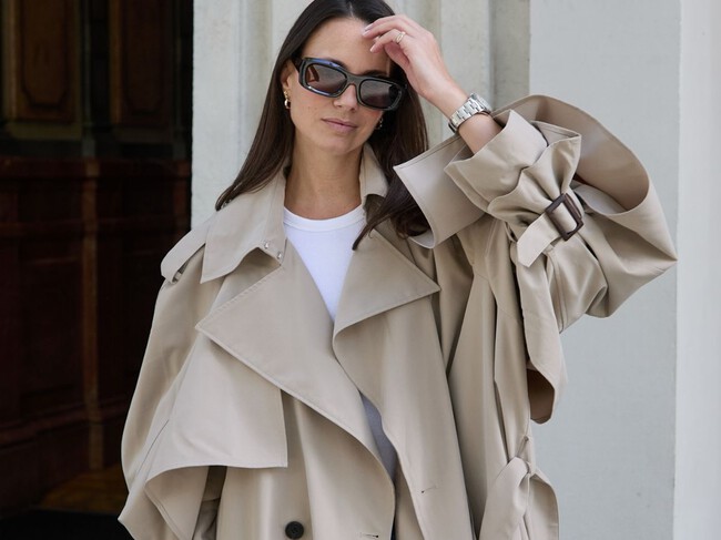 El última en llegar ha sido este trechn clásico con un detalle que la convierte en objeto de deseo de las que siempre van a la última: una suerte de chaleco capa que le aporta volumen y elegancia con un solo gesto. Esta capa-chaleco es totalmente desmontable, podemos llevarla suelta a atada al hombro y si la eliminamos de la ecuación tenemos la gabardina beige de toda la vida.