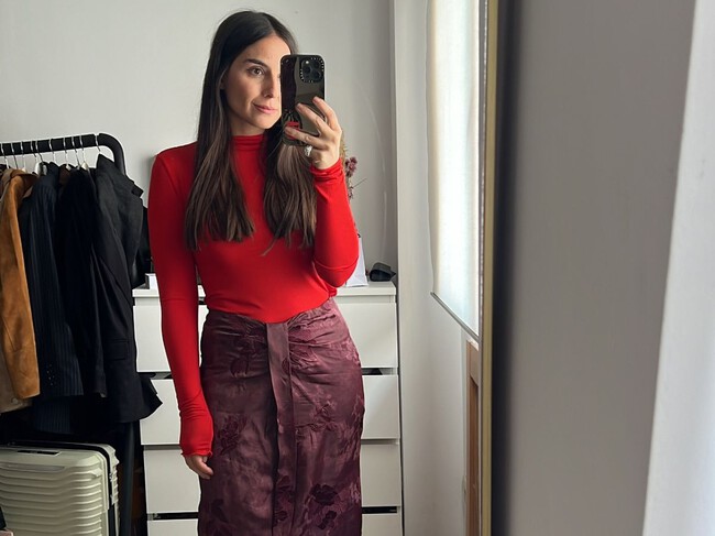 El rojo es uno de los colores del año y este jersey con hombreras lo tiene como absoluto protagonista. Un diseño oversize que realza la figura y que hace un guiño a los 80s (otra de las tendencias de la temporada) por 49,95 euros.