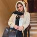 Si queremos darle mayor funcionalidad al outfit, un bolso shopper en la misma tonalidad quedaría genial y podríamos completarlo con otros accesorios como un pañuelo en el cuello y un coletero XXL.