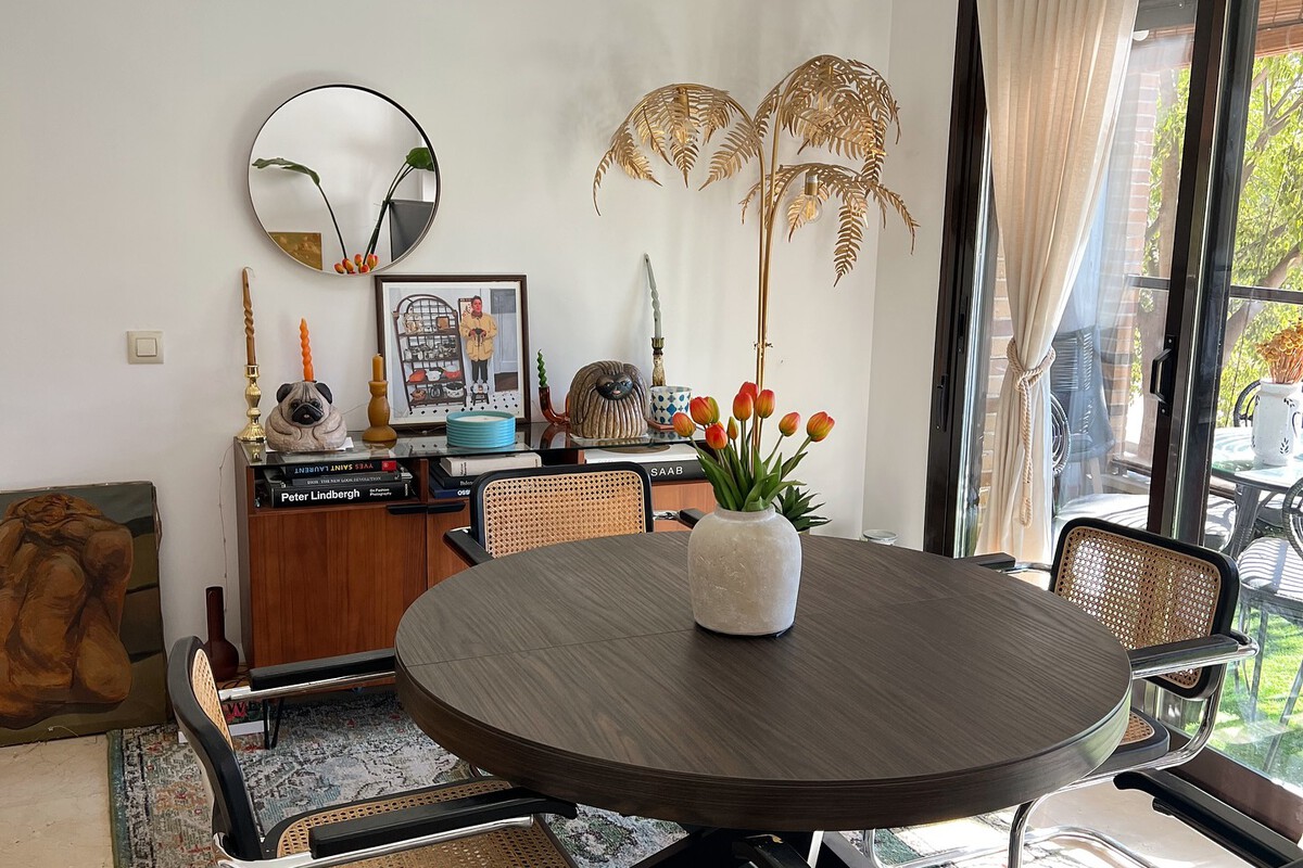 Podemos ubicarla encima del escritorio o sobre la mesa de la televisión, ideal para acomodar mandos y todas aquellas cosas que necesitamos a la mano y a la vista, pero sin que aporte desorden a la estancia. Está hecho de hierro con detalles en madera de acacia.