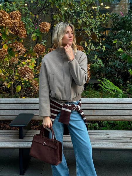 En 2026 recuperaremos los looks más coloridos, alejándonos un poco del minimalismo que nos ha acompañado el año pasado. Esta propuesta es un ejemplo de ello y queda genial con las zapatillas de Lefties. Un outfit formado por un total look en color verde oliva que ha completado con un abrigo color marrón a juego con las zapatillas y un bolso shopper burdeos.