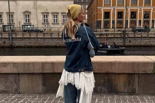 Para llevar un calzado lleno de nostalgia bien entendida nada como un look que siga apostando por las tendencias como este de la danesa Hollie Mercedes. Ella apuesta por el layering llevando un vestido de inspiración oriental con vaqueros debajo y un bolsito al hombro. Su apuesta para el calzado son unas bailarinas tochas siguiendo la teoría del calzado equivocado, pero este look funcionaría igual de bien (o mejor) con nuestras sandalias-zueco de Parfois. No tenemos pruebas, tampoco dudas.