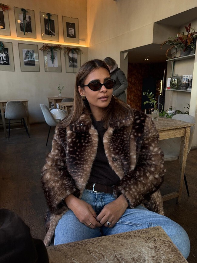 Esta propuesta de la influencer Maxine Wylde es una opción ideal para añadir el bolso shopper de Parfois. Un outfit formado por unos vaqueros, una camisa blanca y un abrigo animal print con detalles de pelo que elevan cualquier conjunto. Una elección ideal tanto para ir a la oficina como a una comida informal con amigas.