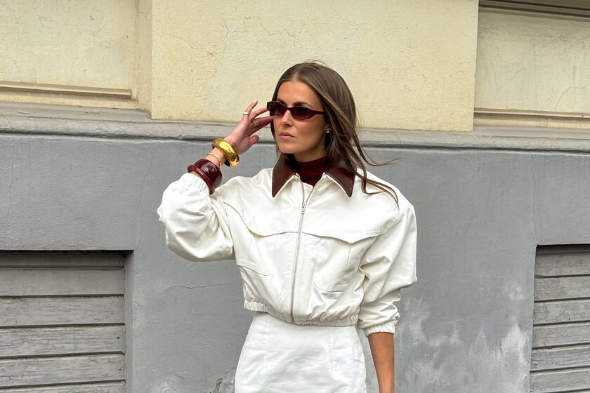 Para sacarle el máximo partido a un bolso color chocolate, este look de la influencer Annabel Rosendahl es pura inspiración. Un outfit formado por una falda midi, un jersey gris y una chaqueta en tendencia. Todo en tonos neutros uniformemente. Los calcetines añaden mucho rollazo, aunque podemos sustituir los mocasines por unos botines con puntera en forma de pico súper estilizados.